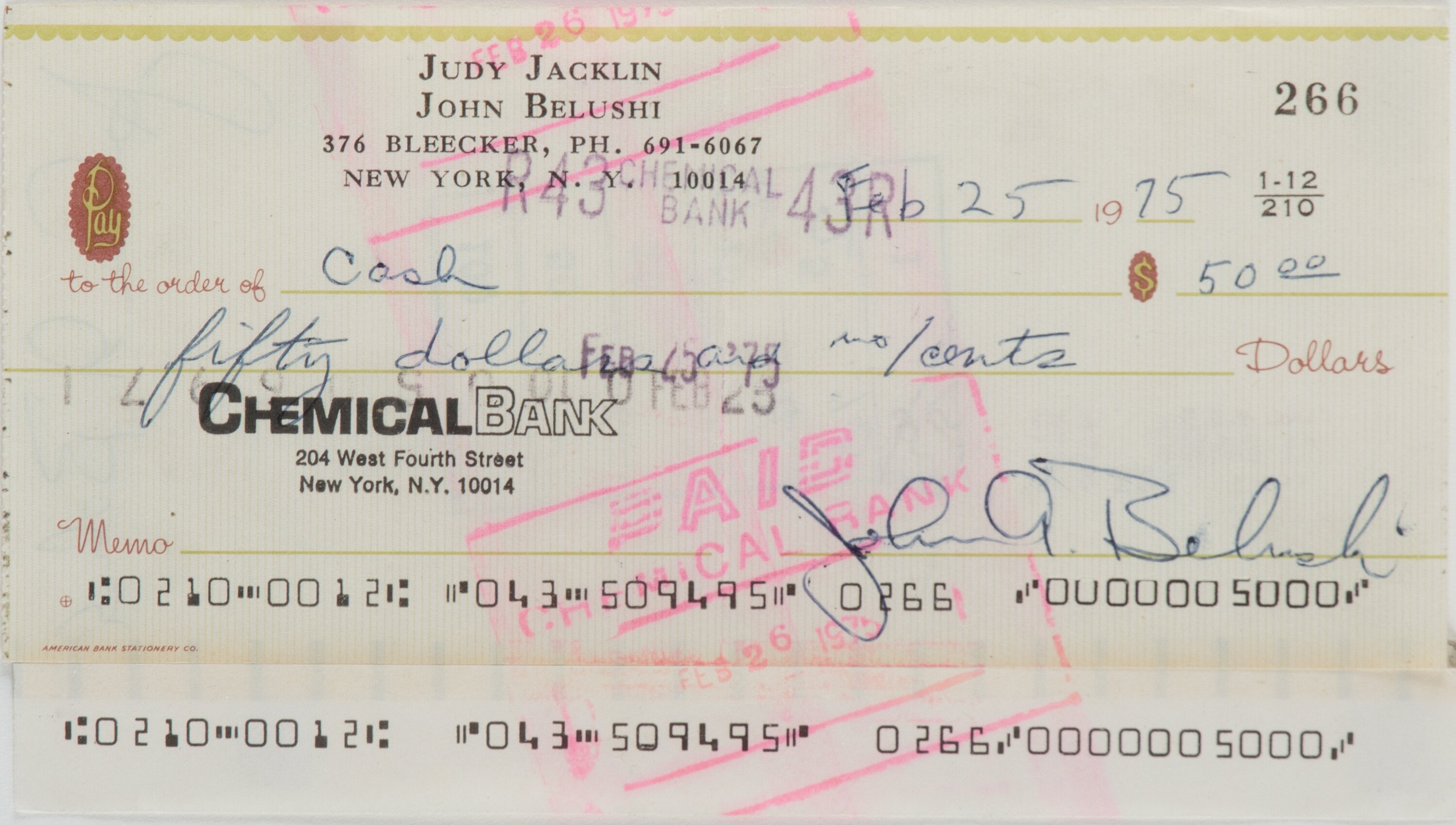 John Belushi Signed Bank Check