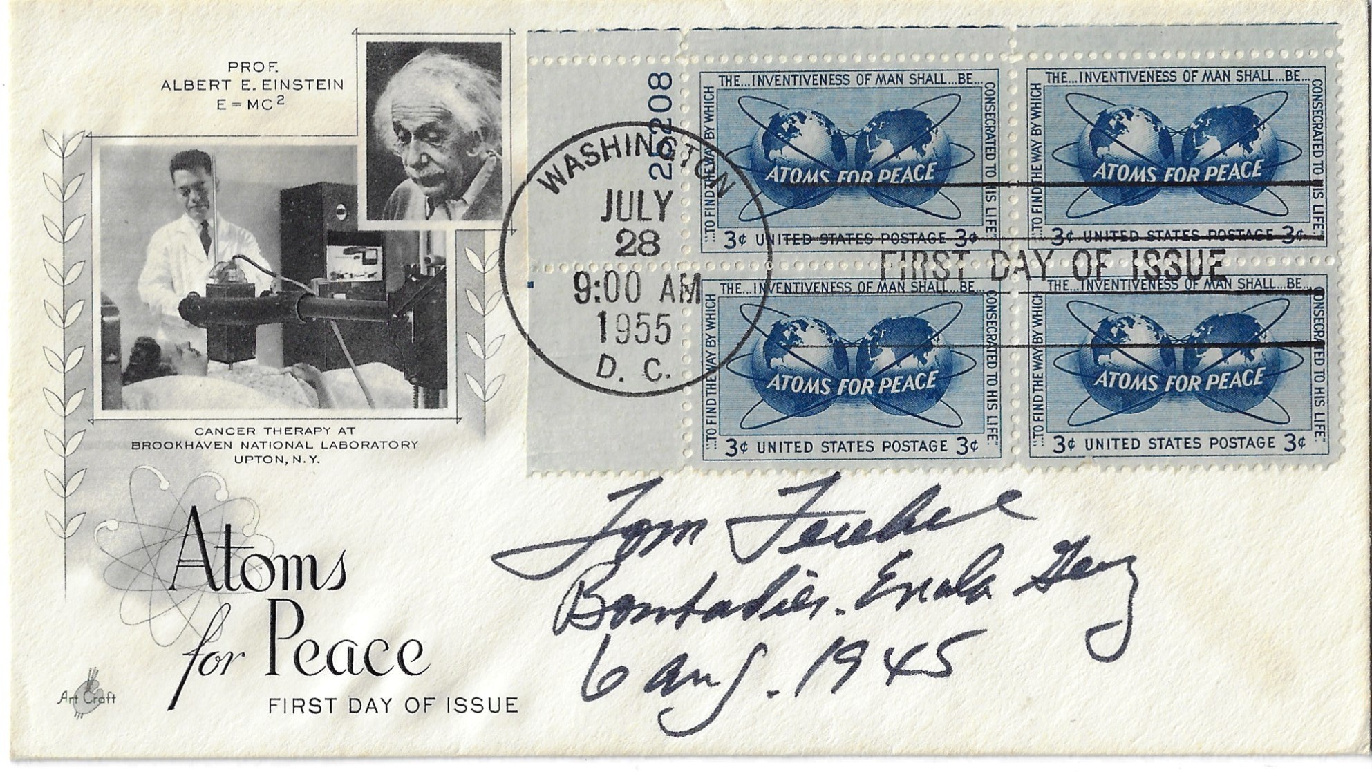 Thomas Ferebee signed and inscribed FDC, "Tom Ferebee, bombardier. Enola Gay, 6 Aug. 1945".