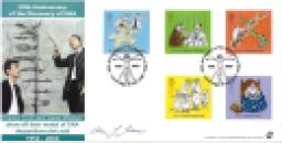 FDC with a cachet honoring the 50th anniversary of the Discovery of DNA, signed in black in, " Alec Jeffreys ".