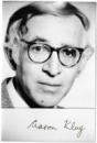 Black and white 3 x 5 photo of Aaron Klug in a suit, signed in black ink. In fine condition.