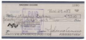 Sought-after personal check, 6 x 2.75, filled out and signed by Madonna, "Madonna Ciccone," payable to medium and clairvoyant Litany Burns for $75, January 29, 1987. In fine condition.