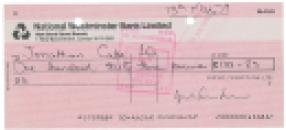 Lennon Productions Ltd. business check, 7.75 x 3.5, filled out in another hand and signed by Ono, "Yoko Ono Lennon," payable to Jonathan Cape Ltd. for £133.83, May 15, 1979.