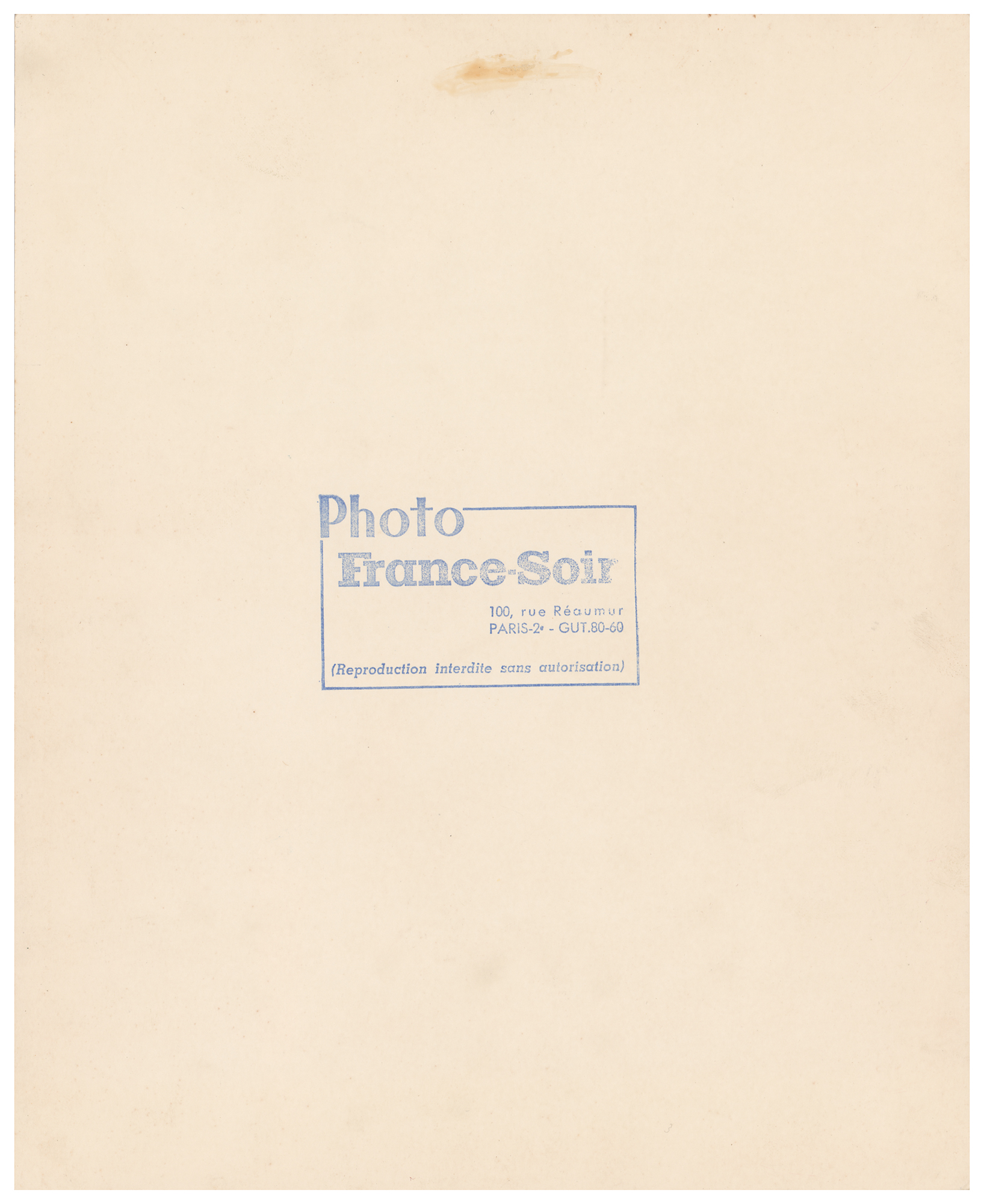 Picasso met Ines Sassier while vacationing in Mougins in 1936 and, delighted by her charm, promptly welcomed both her and her sister to the staff at his Rue de Boétie apartment. She remained Picasso's close friend, advisor, cook, and confidante for more than three decades. A rare oversized pose of the smiling artist, enhanced by its great associations.